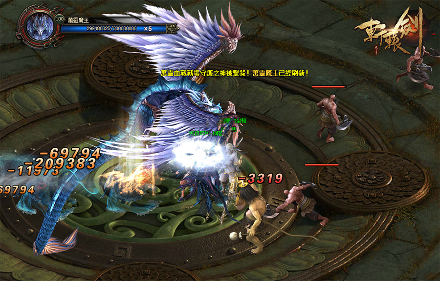 有別與一般的跨服戰,萬靈血戰是伺服器之間的對抗,考驗的是整個服的團結和合作。前4個BOSS各提供一顆,最終BOSS「萬靈魔主」提供2顆,對BOSS造成最高傷害的伺服器可獲得血珠,最後蒐集血珠數量最多的伺服器獲勝!除了掛機可獲得更高的收益外,勝方的全服成員將擁有限時酷炫時裝作為嘉獎,並獲得所有BOSS掉的寶物!敗方也有驚喜獎勵,敗方的主城將降臨「冰霜破敗」的效果,為戰敗營造更多悲慘的氣氛。為了伺服器的榮譽和豐厚獎勵,一起戰鬥吧!