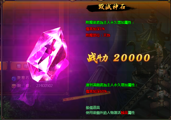 神石是用於鑲嵌在裝備上提升戰鬥能力的策略性寶石。獲得紫裝後即可鑲嵌神石,不同的神石除了自身的戰力外還有特殊的能力。