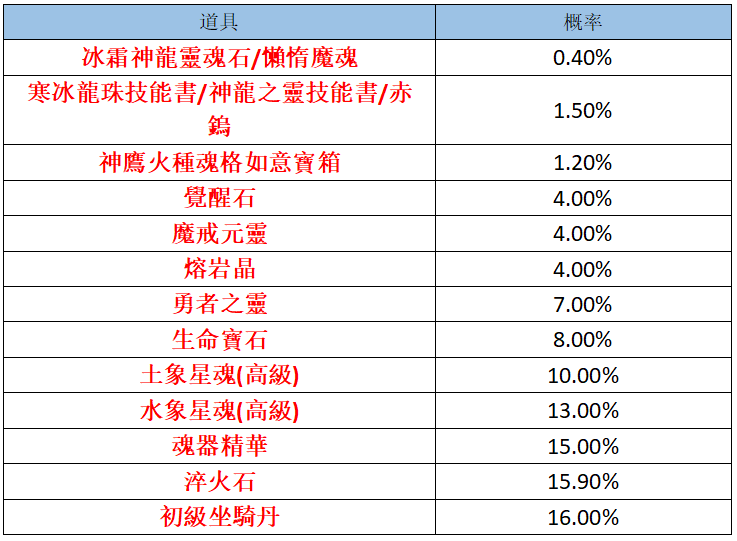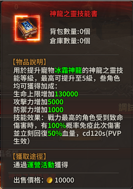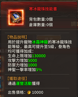 (2)耀世如意寶箱:可從寒冰龍珠技能書/神龍之靈技能書/赤鎢中任選一項獎品