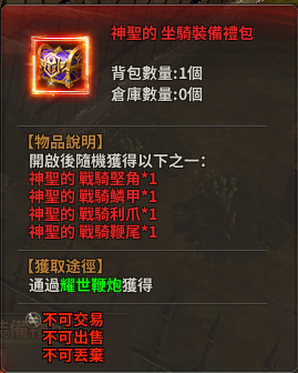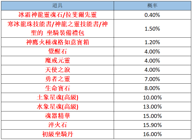 (2)耀世如意寶箱:可從寒冰龍珠技能書/神龍之靈技能書/神聖的 坐騎裝備禮包中任選一項獎品