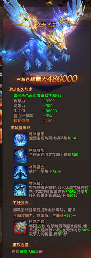 (1)耀世大獎如意寶箱:可從玄天冰魔召喚石/色欲魔魂中任選一項獎品