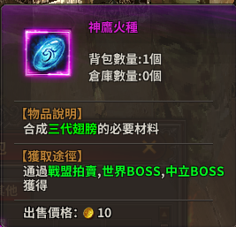 (2)神鷹火種:合成3代翅膀的必要材料。