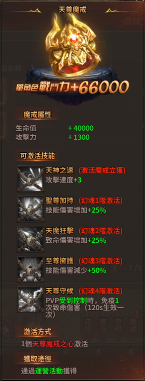 大獎展示:天尊魔戒之心,可用於啟動天尊魔戒,單角色戰鬥力增加66000!